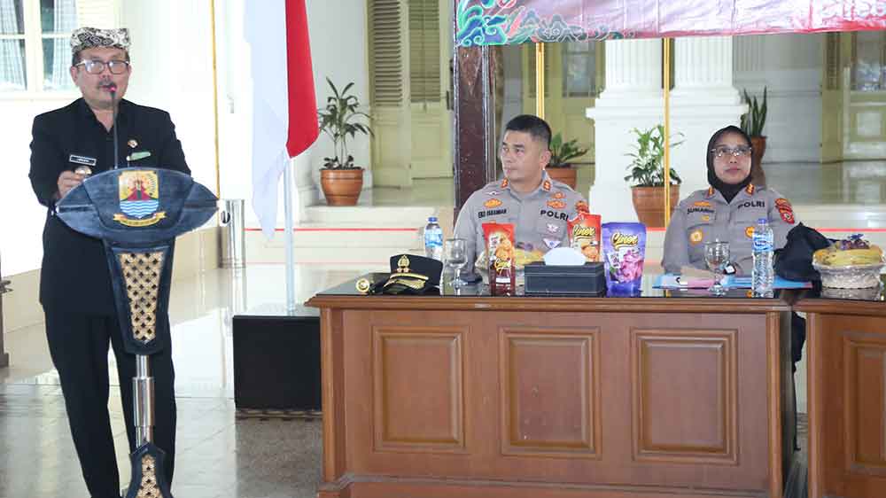 SUARA CIREBON – Bupati Cirebon, Drs H Imron MAg membuka sosialisasi kamtibmas untuk para kuwu dan lurah se-Kabupaten Cirebon di Pendopo Bupati Cirebon, Jalan RA Kartini, Kota Cirebon, Kamis, 3 Juli 2025.