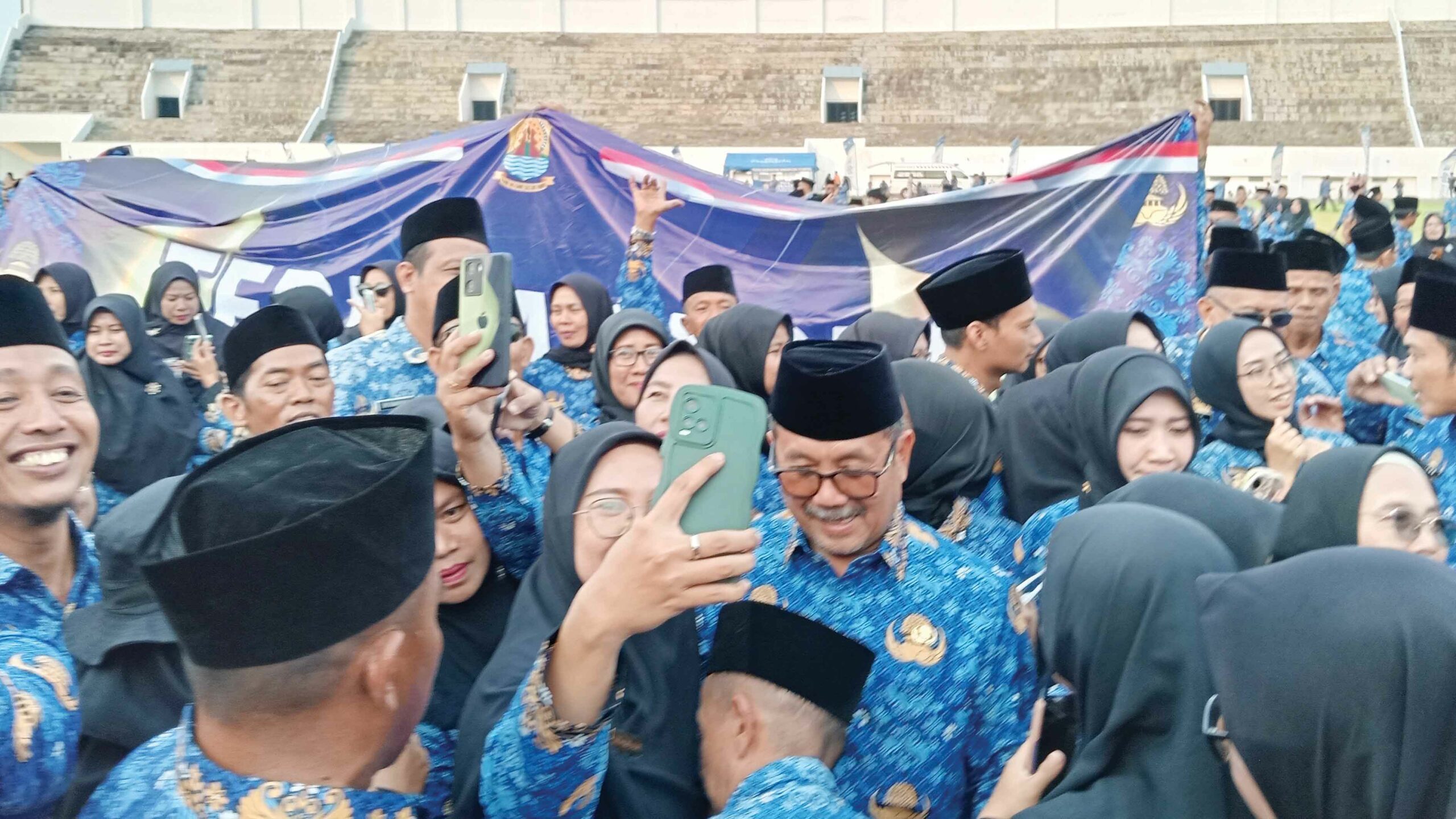 Tak sedikit pula dari mereka yang mengejar orang nomor satu di Kabupaten Cirebon, H Imron, untuk menyampaikan ucapan terima kasih secara langsung dan kemudian berswafoto usai pelantikan.