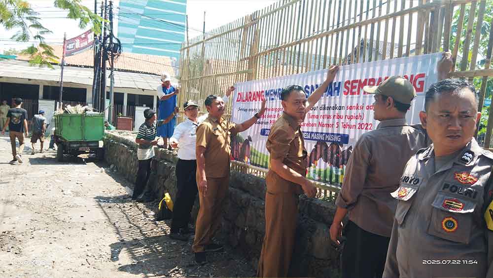 Pemagaran dan pemasangan spanduk larangan membuang sampah sembarangan itu dihadiri langsung Kepala Dinas Lingkungan Hidup (DLH) Kabupaten Cirebon, Dede Sudiono dan Camat Kedawung, Firdaos Agih.