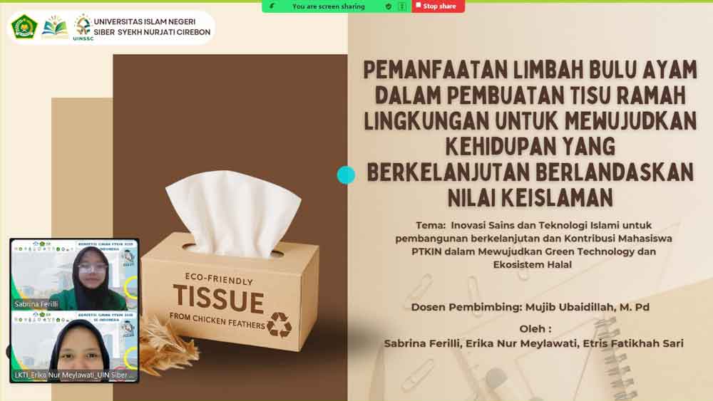 Mereka mengusung karya ilmiah berjudul “Pemanfaatan Limbah Bulu Ayam dalam Pembuatan Tisu Ramah Lingkungan untuk Mewujudkan Kehidupan Berkelanjutan Berlandaskan Nilai Keislaman.”