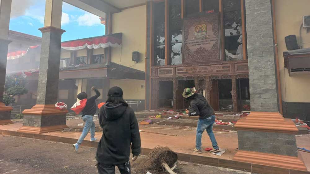 Bahkan, Gedungb DPRD Kabupaten Cirebon pun luluh lantak dihancurkan massa hingga terbakar setelah sebelumnya bentrok pecah di Mapolresta Cirebon.