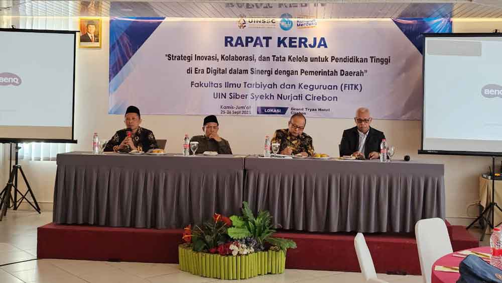 SUARA CIREBON – Fakultas Ilmu Tarbiyah dan Keguruan (FITK) Universitas Islam Negeri (UIN) Siber Syekh Nurjati Cirebon menggelar Rapat Kerja (Raker) bertema “Strategi Inovasi, Kolaborasi, dan Tata Kelola untuk Pendidikan Tinggi di Era Digital dalam Sinergi dengan Pemerintah Daerah”, Kamis hingg Jumat, 25–26 September 2025, di salah satu hotel di Cirebon.