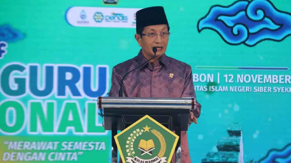 MENTERI Agama Nasaruddin Umar membuka secara resmi kegiatan Kick Off Hari Guru Nasional (HGN) 2025 di Universitas Islam Negeri (UIN) Siber Syekh Nurjati Cirebon, Rabu, 12 November 2025.