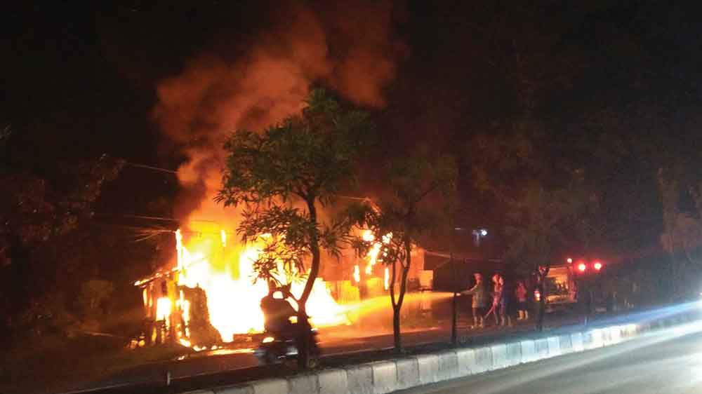 Menurut Casmita, bengkel tambal ban tersebut saat malam hari ditinggal pulang pemiliknya, sehingga dipastikan tidak ada orang di dalam bengkel yang terbakar itu.