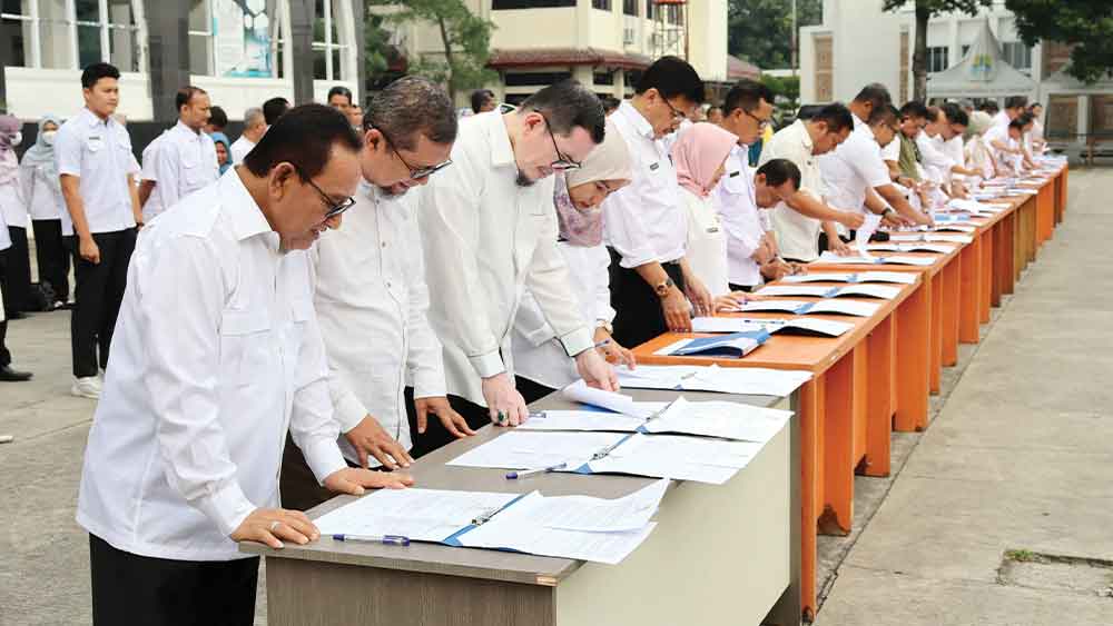 Selain pakta integritas, dilakukan pula penandatanganan perjanjian kinerja. Dokumen ini akan menjadi dasar penilaian capaian target setiap perangkat daerah sepanjang tahun 2026.