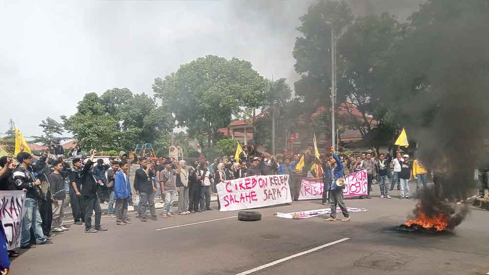 SUARA CIREBON – Puluhan mahasiswa yang tergabung dalam Perhimpunan Mahasiswa Islam Indonesia (PMII) Cirebon melakukan aksi unjuk rasa (unras) atau demo di depan Kantor Bupati, Sumber, Rabu, 14 Januari 2026.