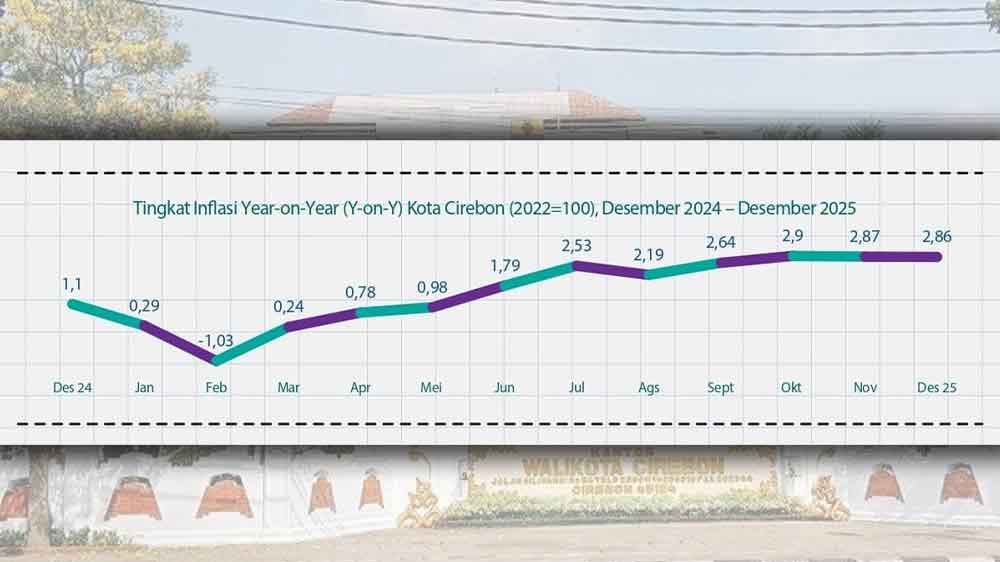 SUARA CIREBON – Badan Pusat Statistik (BPS) Kota Cirebon mencatat inflasi tahunan (Year-on-Year) sebesar 2,68 persen pada Desember 2025.