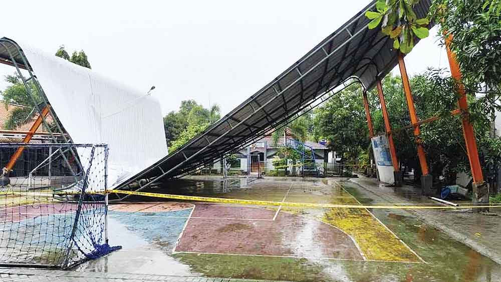 Ukendi menjelaskan kronologis kejadian dan dugaan kuat penyebab utama robohnya atap kanopi outdoor raksasa yang menutup lapangan olahraga di sekolah itu.
