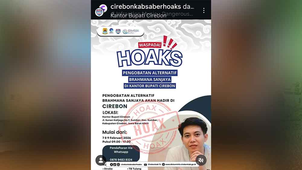 “Waspada!!! Hoaks Pengobatan Alternatif Brahmana Sanjaya di Kantor Bupati Cirebon,” tulis cirebonkabsaberhoaks.***
