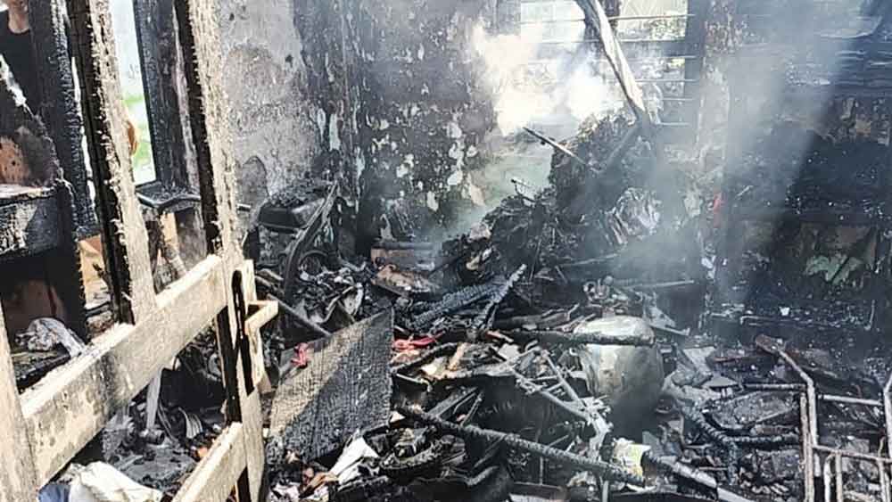Akibat kejadian tersebut, dua unit sepeda motor, Honda CBR bernopol E 6303 KW dan Mio Sporty bernopol E 4735 BW, lemari pakaian, serta sejumlah barang lainnya ludes terbakar.