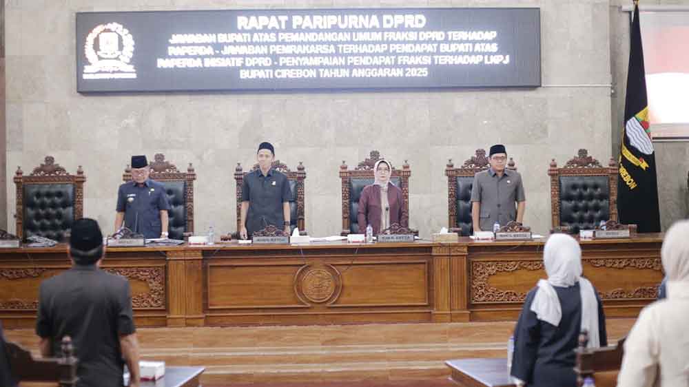 SUARA CIREBON – DPRD Kabupaten Cirebon menggelar rapat paripurna dengan agenda jawaban bupati atas pemandangan umum fraksi terhadap tiga rancangan peraturan daerah (Raperda) inisiatif pemerintah daerah di ruang Abhimata Paripurna, Selasa, 31 Maret 2026.
