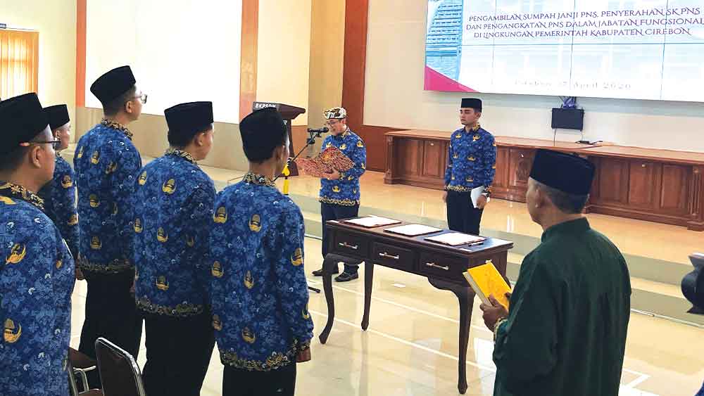 Hal itu disampaikan Bupati Cirebon, H Imron, dalam pengambilan sumpah dan janji Pegawai Negeri Sipil (PNS), penyerahan Surat Keputusan (SK), serta pengangkatan dalam jabatan fungsional di Aula Graha Cakrabuana Badan Kepegawaian dan Pengembangan Sumber Daya Manusia (BKPSDM) Kabupaten Cirebon, Jumat, 17 April 2026.